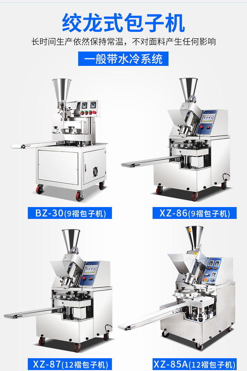 XZ-290A智能型卷面包子機,仿手工智能包子機。操作簡單、精準控制、快速成型、模擬人工。好機器,表里如一,專注品質機器,客戶現場試機。一臺包子機輕松解決手工和面/包餡/人工效率低,用人成本高等一系列問題。