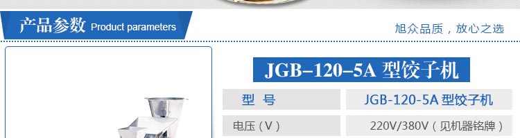 JGB-120-5A型輸送帶餃子機,本機是一款可生產各種肉餡、肉菜混合餡、全菜餡及其他種餡餃子的設備。一機多用途,只要更換模具,就可制作不同的食品,如春卷、餛飩、咖喱角、鍋貼等。適用于賓館、飯店、餐廳、團體食堂加工,幼兒園、速凍餃子生產。