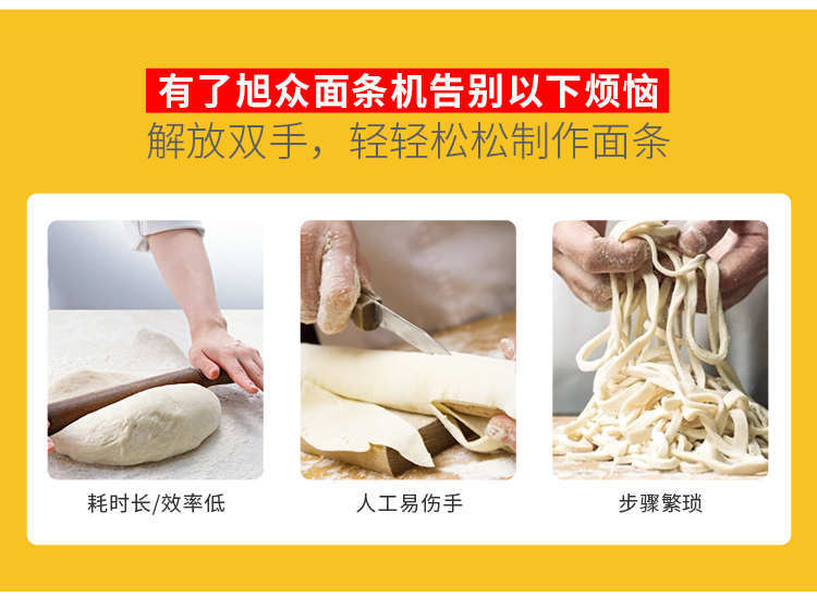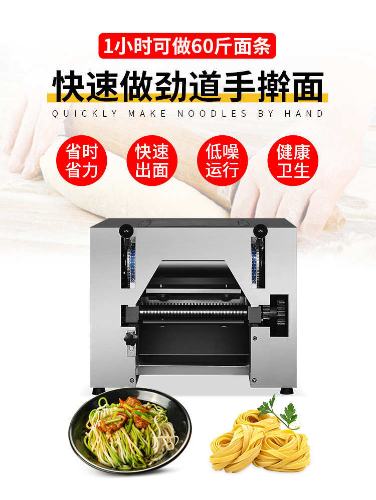 MTJ-30型臺(tái)式面條機(jī)(卡把式),1小時(shí)可做60斤面條快速做勁道手搟面,有了旭眾面條機(jī)告別以下煩惱解放雙手,輕輕松松制作面條