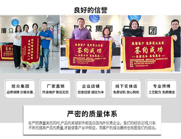 廣州旭眾食品機械有限公司是一家集科研開發,生產設計,營銷服務為一體的現代化生產企業。現代化生產車間,精湛制造技術,所產機械歷經市場重重考驗,不斷贏得海內外客戶的贊譽。