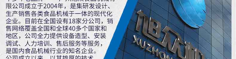 廣州旭眾食品機(jī)械有限公司是一家集科研開發(fā),生產(chǎn)設(shè)計(jì),營銷服務(wù)為一體的現(xiàn)代化生產(chǎn)企業(yè)。現(xiàn)代化生產(chǎn)車間,精湛制造技術(shù),所產(chǎn)機(jī)械歷經(jīng)市場重重考驗(yàn),不斷贏得海內(nèi)外客戶的贊譽(yù)。